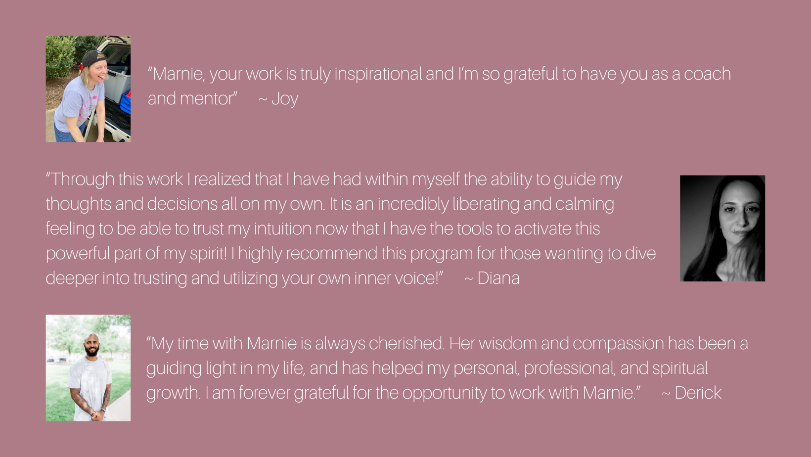 I meet you where you are. Whether you are new to personal growth, or you have read a hundred books on the subject, or you’ve been working on yourself for years, I help you navigate through life’s pains and support you on your journey.